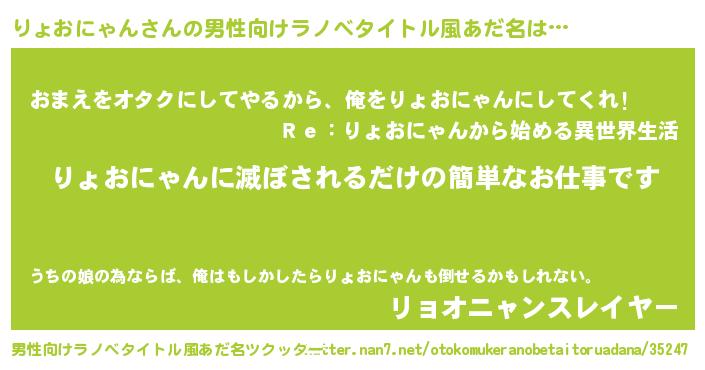 | ヒーロー風カッコイイあだ名 | 『慈愛の使者りょおにゃん』 |
