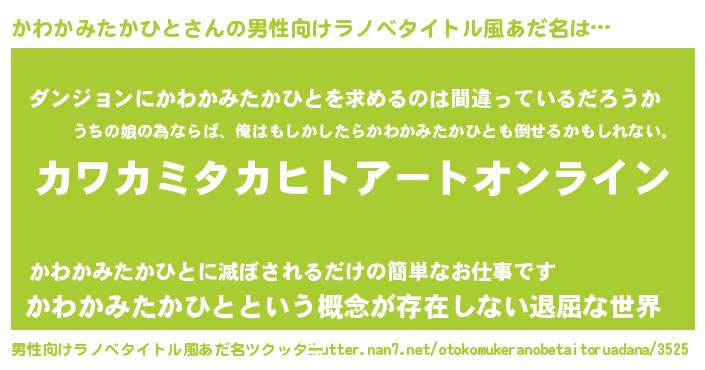 | 胡散臭い通販商品みたいなあだ名 | 『億万長者になれる水晶球…その名も「かわかみたかひと」』 |