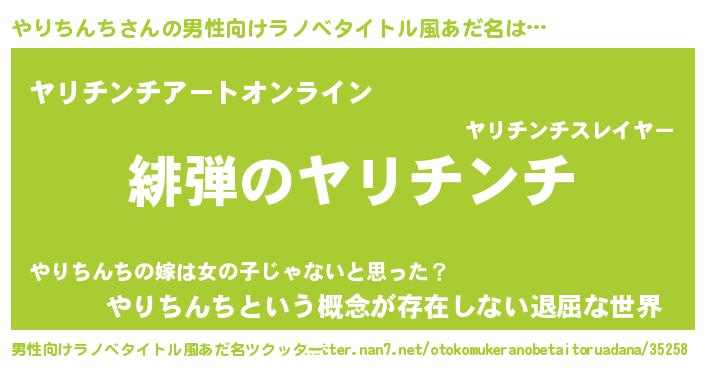 | 胡散臭い通販商品みたいなあだ名 | 『必ず成功するブレスレット…その名も「やりちんち」』 |