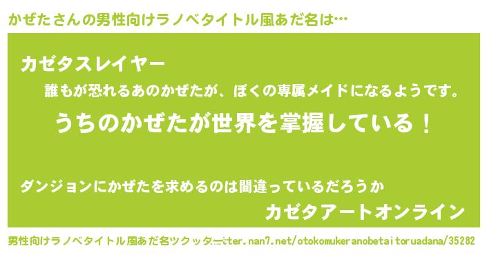 | 胡散臭い通販商品みたいなあだ名 | 『億万長者になれるブレスレット…その名も「かぜた」』 |