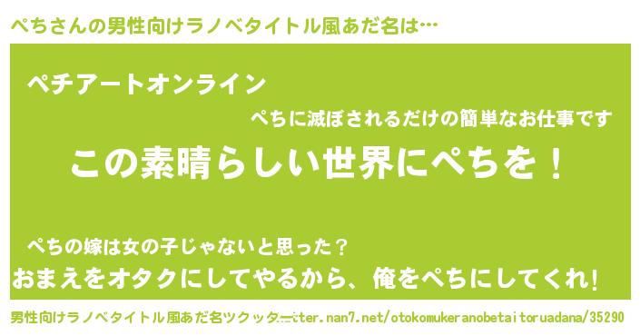 | 胡散臭い通販商品みたいなあだ名 | 『あなたにだけ特別に提供する世界で10本だけ現存している希少なブランデー…その名も「ぺち」』 |