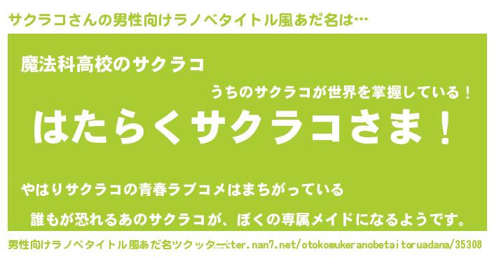 | 意味不明あだ名 | 『自称サクラコ』『永久保存サクラコ』 |