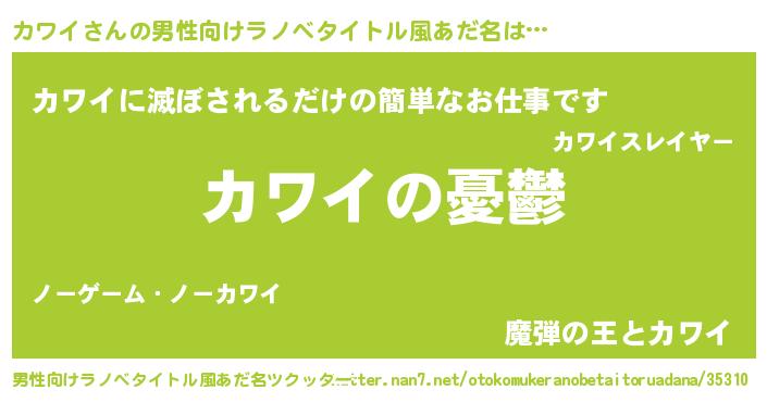 | 女子向けラノベタイトル風あだ名 | 『カワイ姫と円卓の騎士』『カワイ恋絵巻』 |