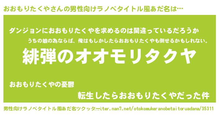 | 伝説のあだ名 | 『孤高の僧侶おおもりたくや』 |