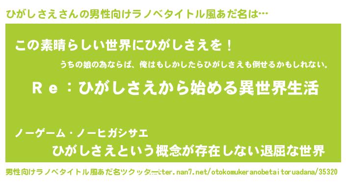 | 女子向けラノベタイトル風あだ名 | 『ひがしさえストレイドッグス』 |
