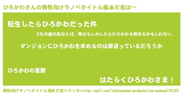 | 女子向けラノベタイトル風あだ名 | 『ひろかわは平凡を望む』 |