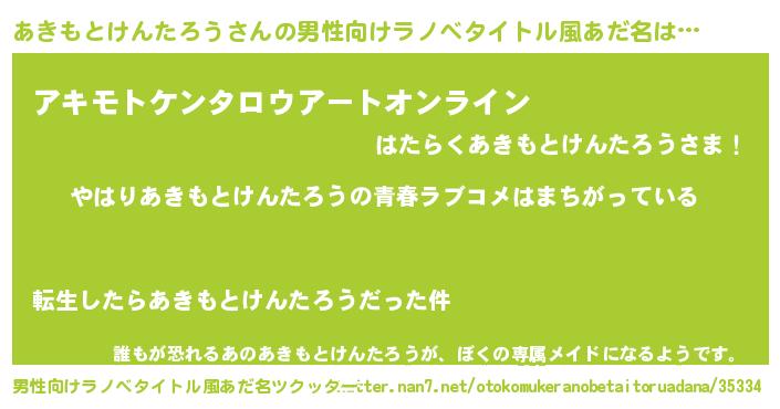 | 女子向けラノベタイトル風あだ名 | 『あきもとけんたろう伯爵の花嫁』 |