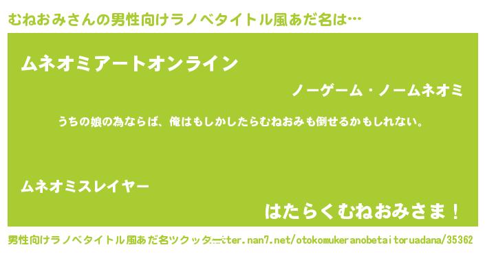 | 女子向けラノベタイトル風あだ名 | 『むねおみ伯爵の花嫁』 |
