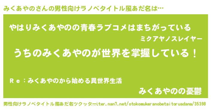 | 女子向けラノベタイトル風あだ名 | 『男装みくあやのの憂鬱な任務』 |