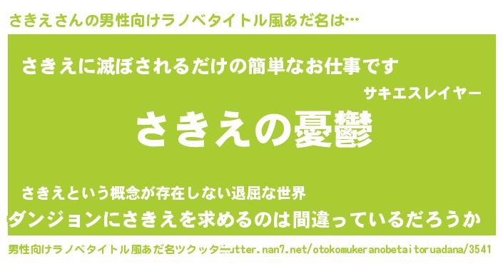 | 女子向けラノベタイトル風あだ名 | 『(仮)さきえのやんごとなき事情』 |