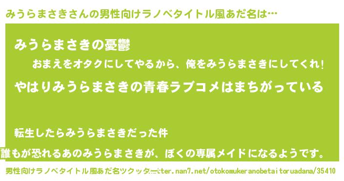| 女子向けラノベタイトル風あだ名 | 『みうらまさきの雑貨屋さん』 |