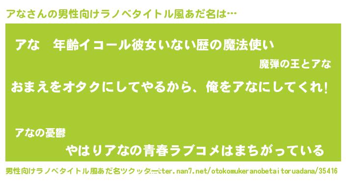 | 女子向けラノベタイトル風あだ名 | 『アな恋絵巻』『アなの玉の輿計画!』 |