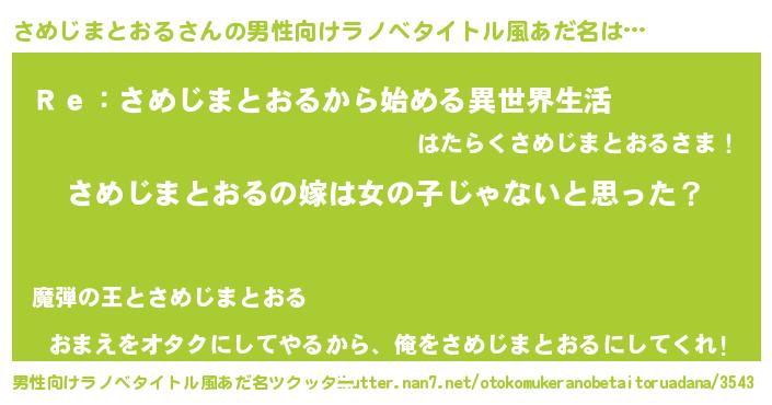 | 女子向けラノベタイトル風あだ名 | 『さめじまとおる様がみてる』 |