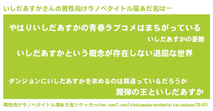 | 女子向けラノベタイトル風あだ名 | 『異世界で失敗しない100のいしだあすか』 |