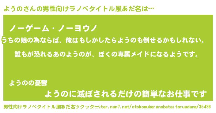 | 女子向けラノベタイトル風あだ名 | 『ようのの契約王妃』『ようの恋絵巻』 |