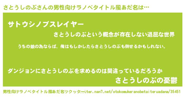 | 意味不明あだ名 | 『さとうしのぶフォーエバー』 |