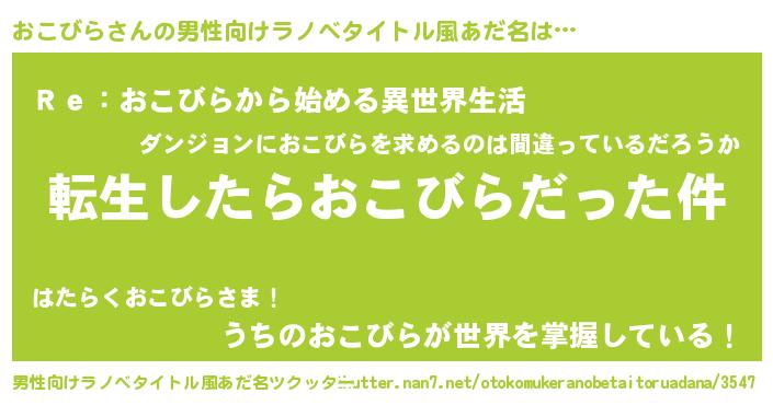 | 胡散臭い通販商品みたいなあだ名 | 『テレビで話題の高麗人参…その名も「おこびら」』 |
