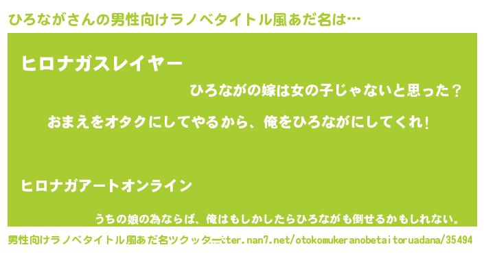 | 女子向けラノベタイトル風あだ名 | 『ひろなが夫妻のなれそめ』 |