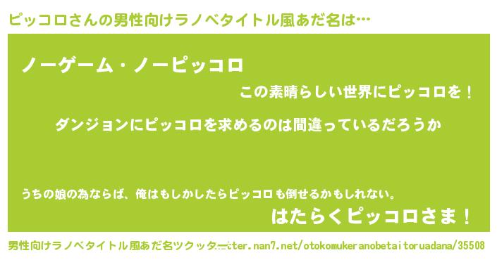 | 女子向けラノベタイトル風あだ名 | 『ピッコロは平凡を望む』 |