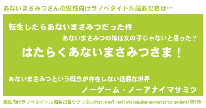 | 胡散臭い通販商品みたいなあだ名 | 『100人中100人が認めた隕石のかけら…その名も「あないまさみつ」』 |