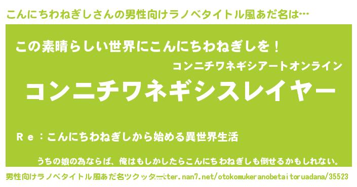 | 女子向けラノベタイトル風あだ名 | 『婚約破棄系悪役こんにちわねぎしに転生したので、保身に走りました。』 |
