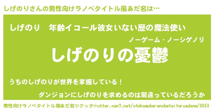 | 女子向けラノベタイトル風あだ名 | 『(仮)しげのりのやんごとなき事情』 |