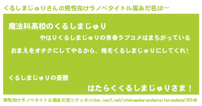 | 女子向けラノベタイトル風あだ名 | 『くるしまじゅり恋絵巻』 |