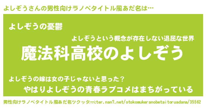| 女子向けラノベタイトル風あだ名 | 『よしぞうなんてお断りですっ。』 |