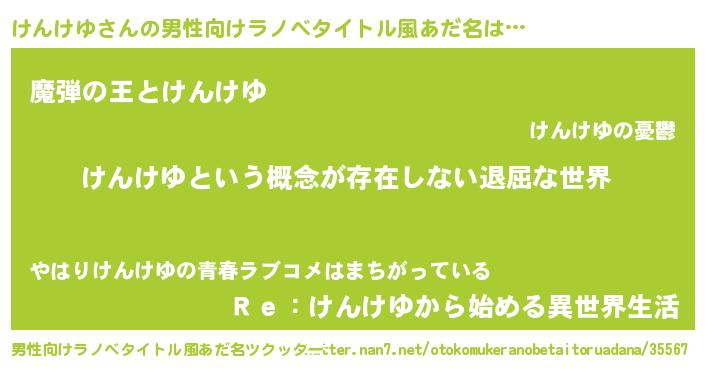 | 意味不明あだ名 | 『永久保存けんけゆ』『自称けんけゆ』 |