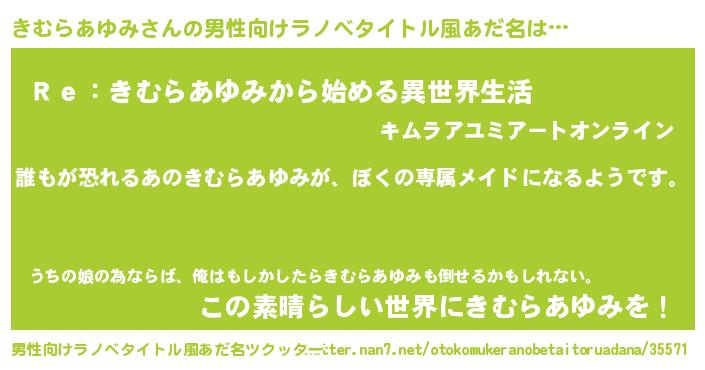 | 意味不明あだ名 | 『永久保存きむらあゆみ』 |