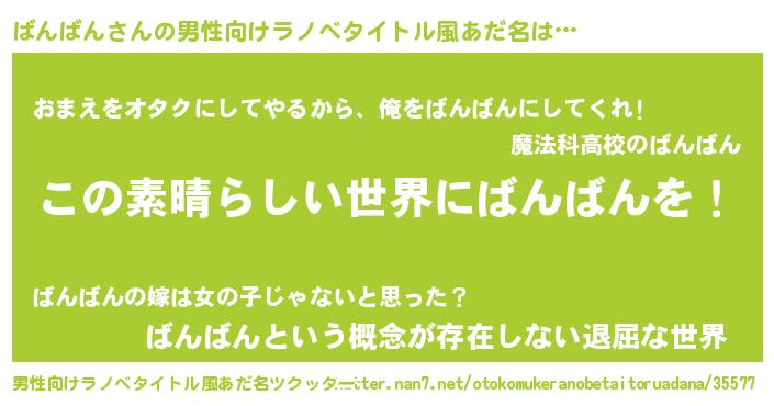 | 意味不明あだ名 | 『住所不定無職ばんばん(47歳)』 |