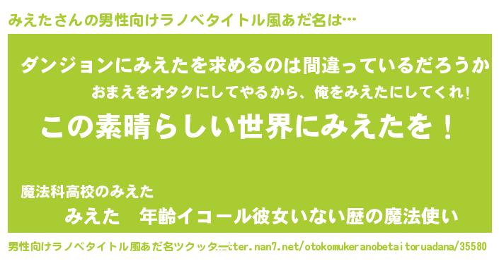 | 意味不明あだ名 | 『住所不定無職みえた(74歳)』『自称みえた』 |