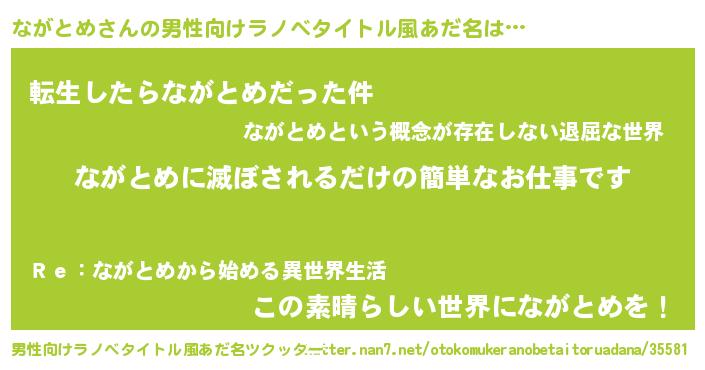 | 胡散臭い通販商品みたいなあだ名 | 『あなたにだけ特別に提供する100年もののヴィンテージワイン…その名も「ながとめ」』 |