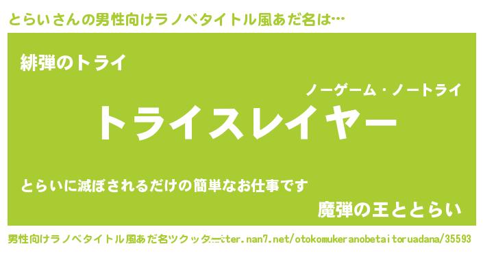 とらいさんの男性向けラノベタイトル風あだ名をツクッター!