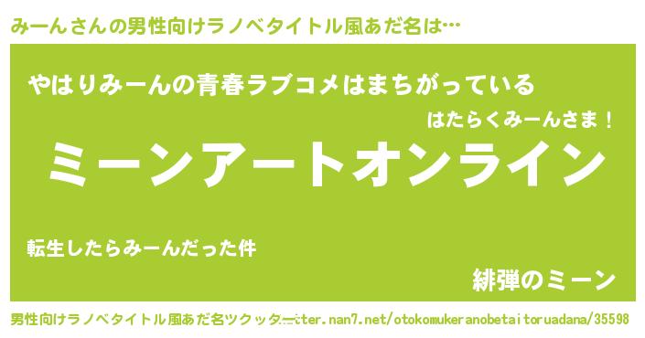 | 胡散臭い通販商品みたいなあだ名 | 『モテモテ間違いなし水晶球…その名も「みーん」』 |