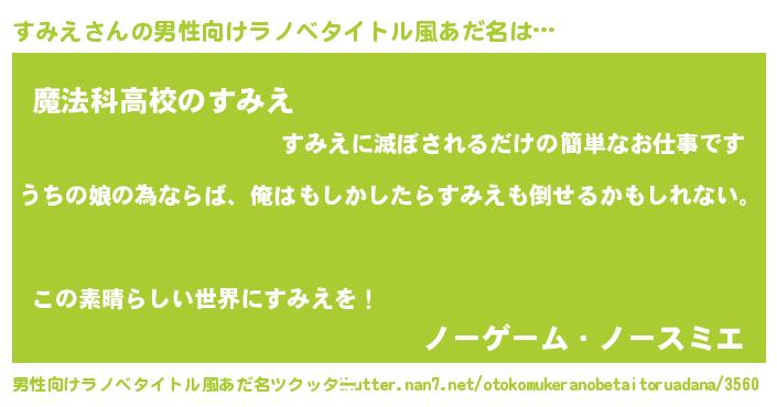 | 意味不明あだ名 | 『すみえフォーエバー』『自称すみえ』 |