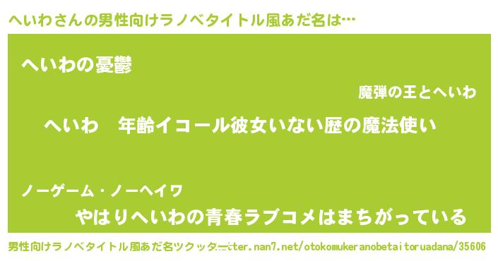 | 胡散臭い通販商品みたいなあだ名 | 『億万長者になれる水晶球…その名も「へいわ」』 |