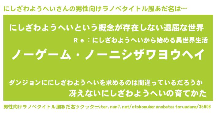 | 女子向けラノベタイトル風あだ名 | 『にしざわようへい恋絵巻』 |