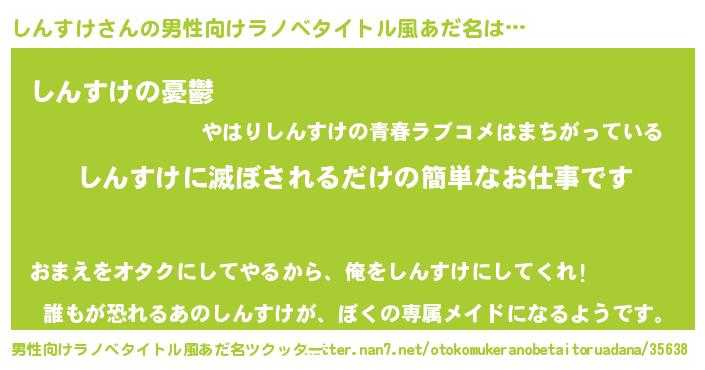 しんすけさんの男性向けラノベタイトル風あだ名をツクッター!