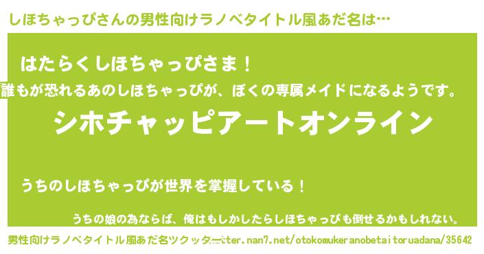 | 女子向けラノベタイトル風あだ名 | 『誰かこのしほちゃっぴを説明してください! ~契約から始まるウェディング~』 |