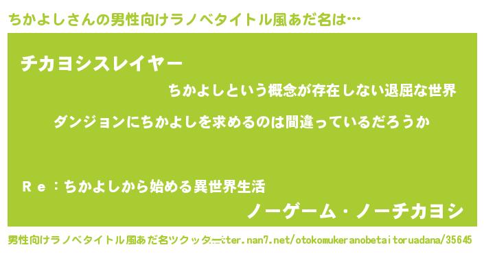 | 女子向けラノベタイトル風あだ名 | 『ちかよしの卵を拾いまして』 |