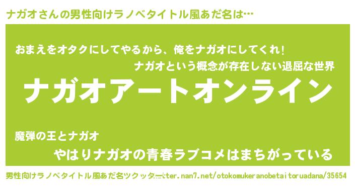 | 女子向けラノベタイトル風あだ名 | 『ナガオ姫と円卓の騎士』 |