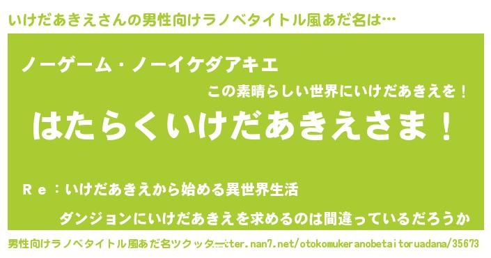 | ヒーロー風カッコイイあだ名 | 『愛の使者いけだあきえ』『天弓騎士イケ』 |