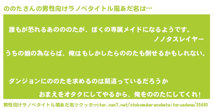 | 女子向けラノベタイトル風あだ名 | 『ののた伯爵の花嫁』『ののた恋絵巻』 |