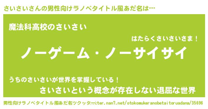 さいさいさんの男性向けラノベタイトル風あだ名をツクッター!