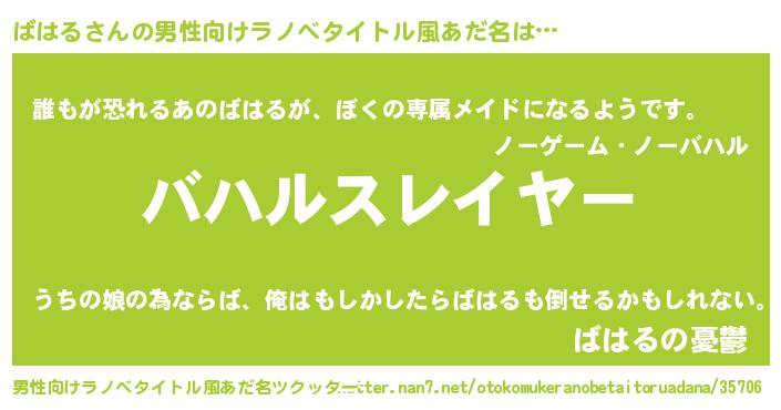 | 意味不明あだ名 | 『めかぶ科ばはる属』『永久保存ばはる』 |