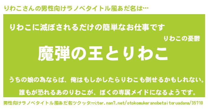 | 女子向けラノベタイトル風あだ名 | 『りわこが死なない童話 林檎のりわこの診療簿』 |