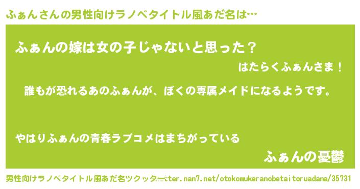 | ヘコむあだ名 | 『ふぁん(小並感)』『ふぁ太郎』 |