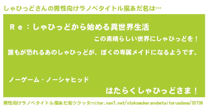 | 胡散臭い通販商品みたいなあだ名 | 『来世でも幸せになれる健康食品…その名も「しゃひっど」』 |