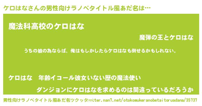| ファンタジー風あだ名 | 『エターナルケロハナー』『ゼケロトゥ』 |